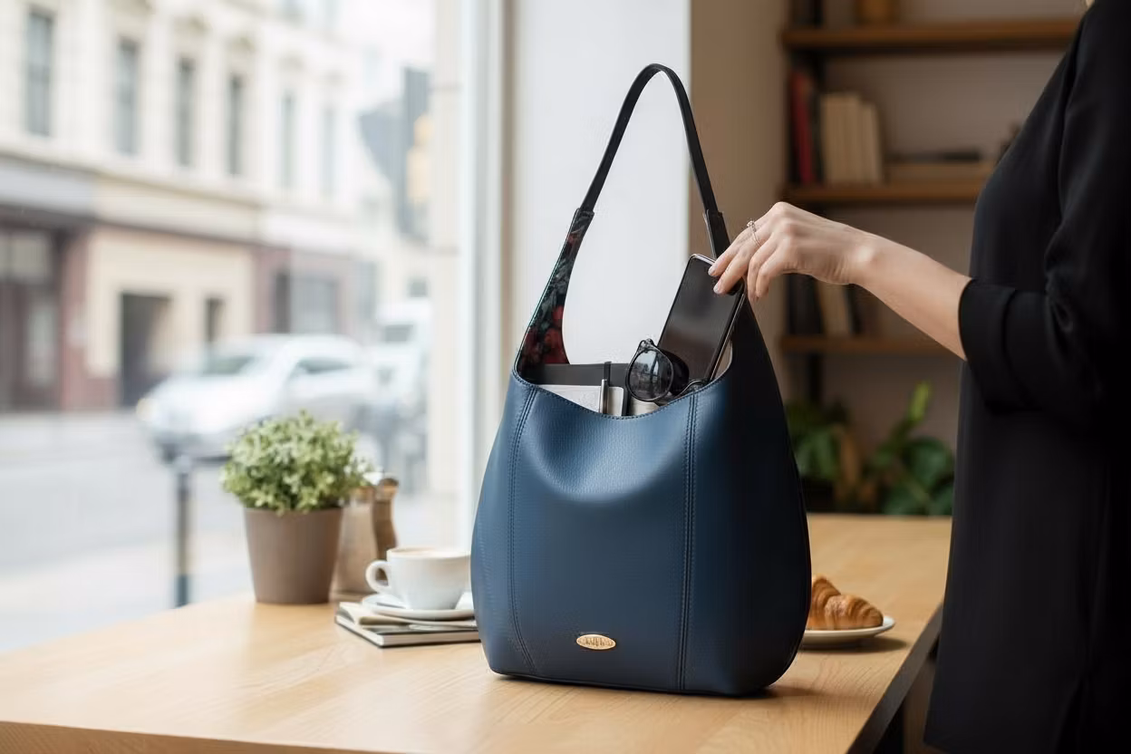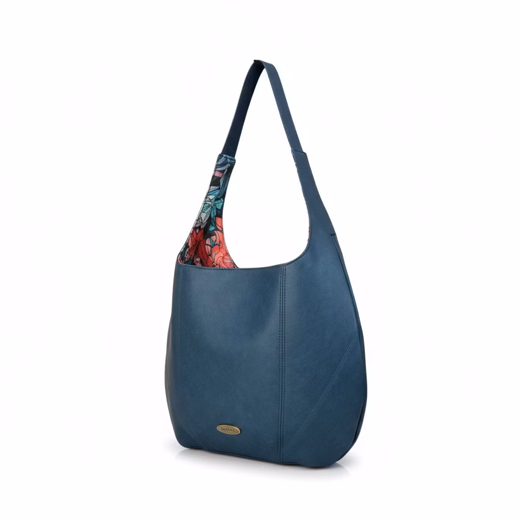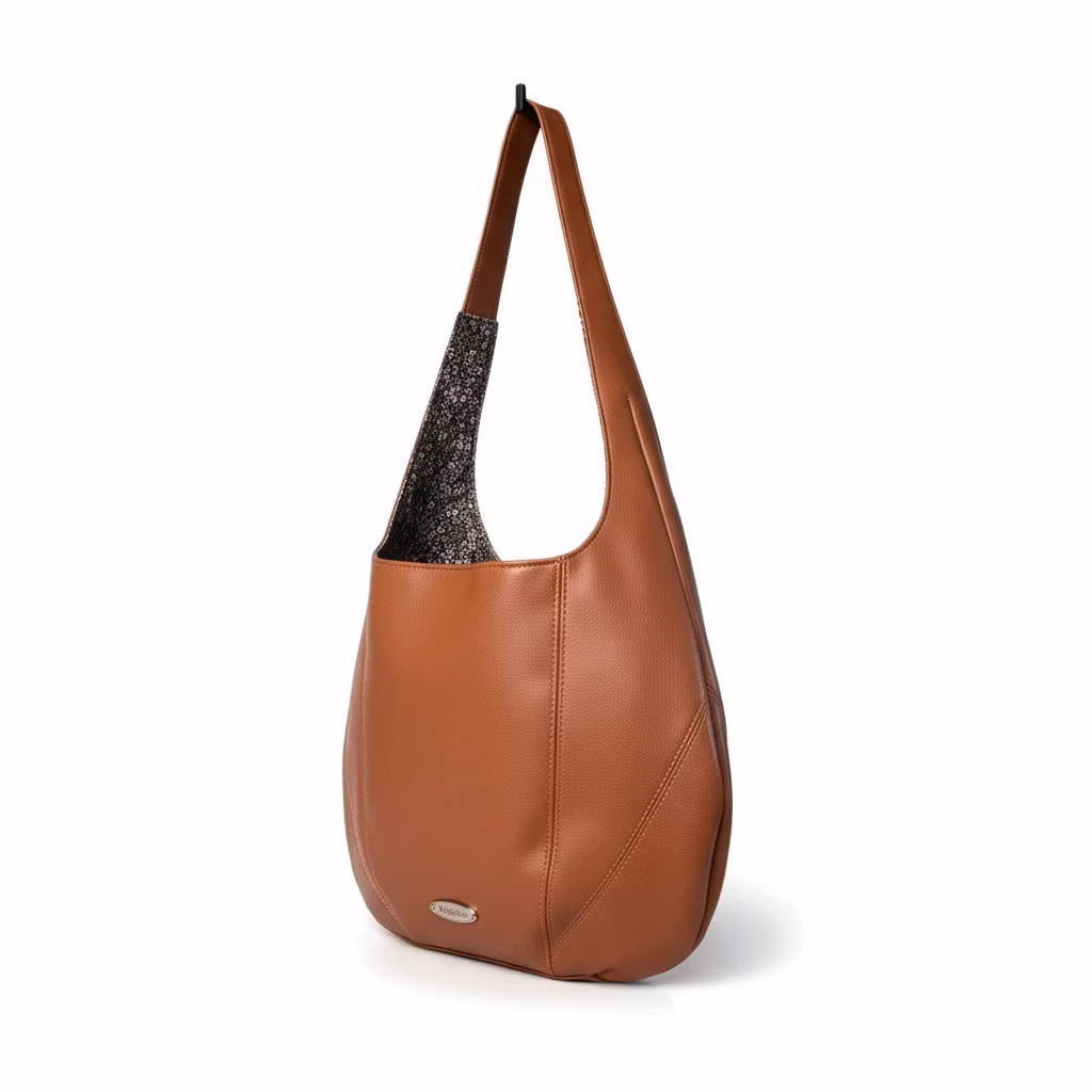 Lekker "poseveske" sydd i skai. Den runde formen gjør at veska henger godt under armen, samtidig som den rommer mye. En stikklomme inni for lett tilgang til småting som nøkler, mobil osv. Veska holdes sammen av magnetknapp.